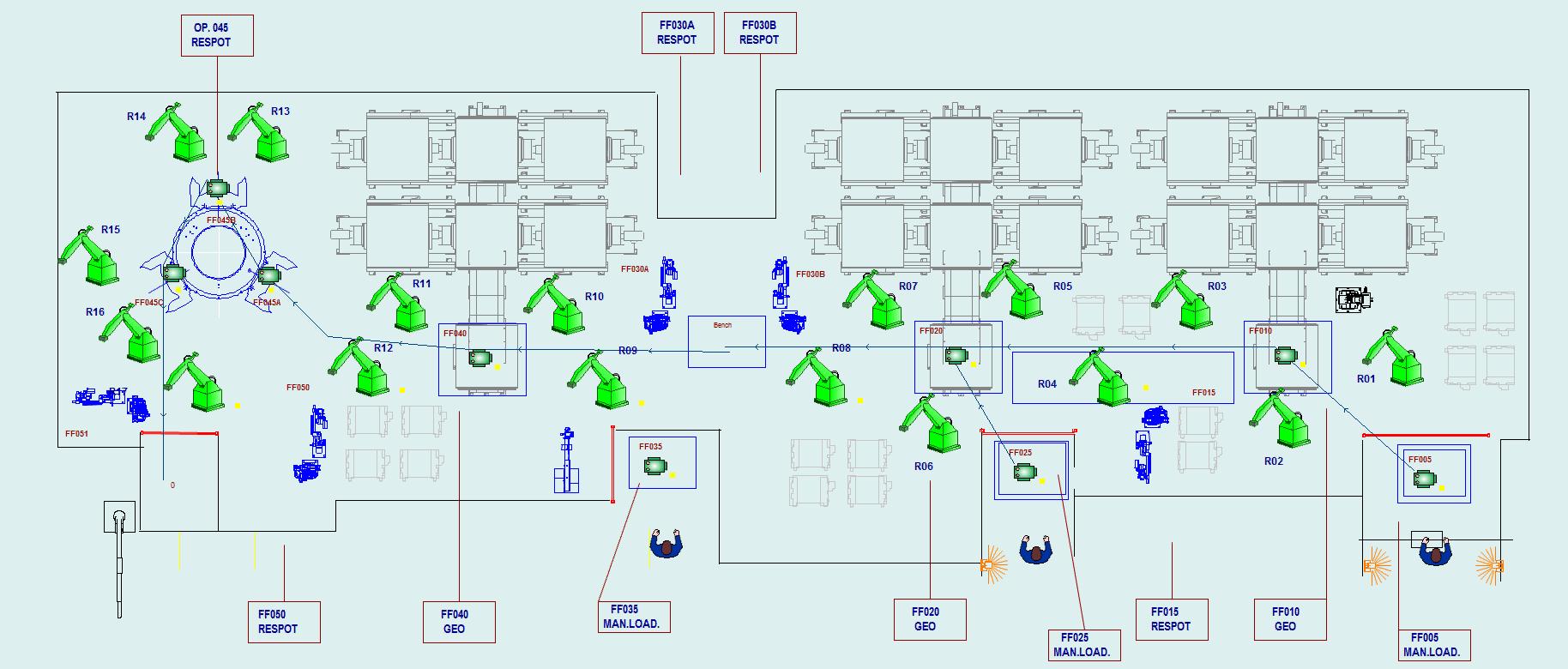 運用Plant Simulation物流仿真模擬軟件對產線建模仿真,調整緩存BUFFER容量或工藝瓶頸分析,從而實現產線的開通率和穩定節拍。